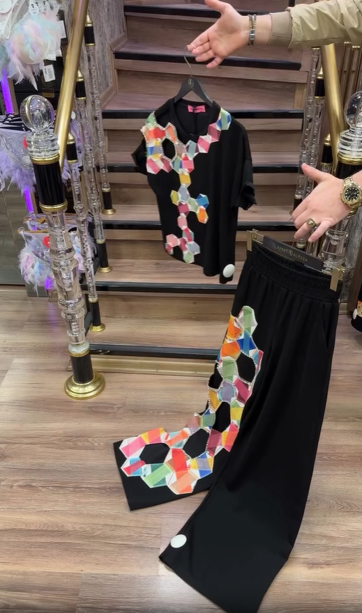 🌈New Products💎Fashionable women's casual color blocked design top and pants