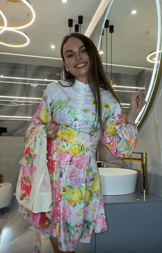 Women's V Neck Long Sleeve Floral Dress
