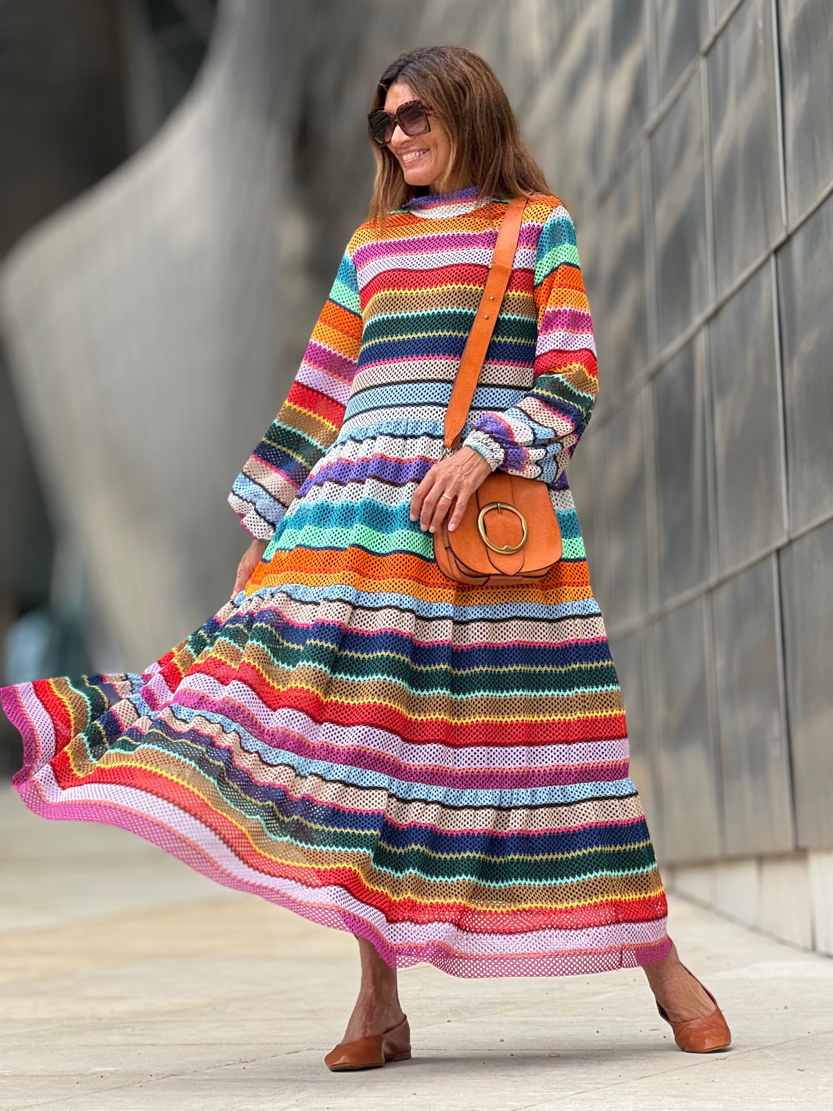 Add a splash of colour to your wardrobe with the Dress Kim multicolour! This stunning knitted dress is sure to make a statement and turn heads. It fits sizes 34-40 (EU), making it a great choice for any body type. The fabric blend of 70% cotton and 30% polyester ensures maximum comfort and breathability, while the 100% cotton lining adds extra durability. Taking care of the Dress Kim is easy - just machine wash at 30 degrees for a long-lasting look.