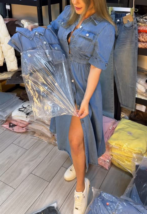 This denim dress is made of high-quality fabrics, which are soft and comfortable to the touch and have good breathability. Wearing this dress, you can feel comfortable and fit while keeping fresh and comfortable.