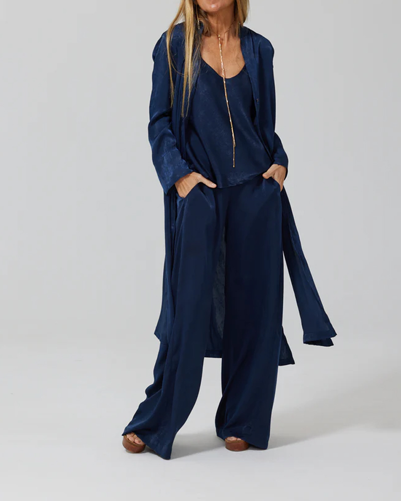 Fashion satin top and pants cardigan set