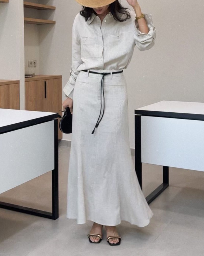Fashion women's casual collar shirt and skirt two-piece set