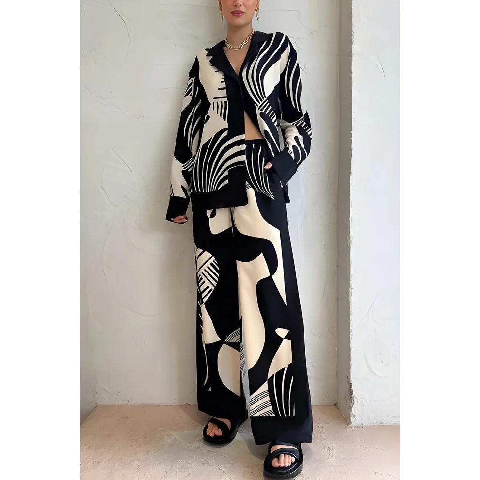 Dieses modische Damen Print Hose Zweiteiler-Set ist ein absolutes Must-have! Das lockere Langarm-Shirt und die passende Hose mit elastischem Bund sorgen für ein angenehmes Tragegefühl und eine feminine Silhouette. Das stilvolle Muster verleiht Ihrem Look eine besondere Note – ob für den Alltag, das Büro oder elegante Anlässe.