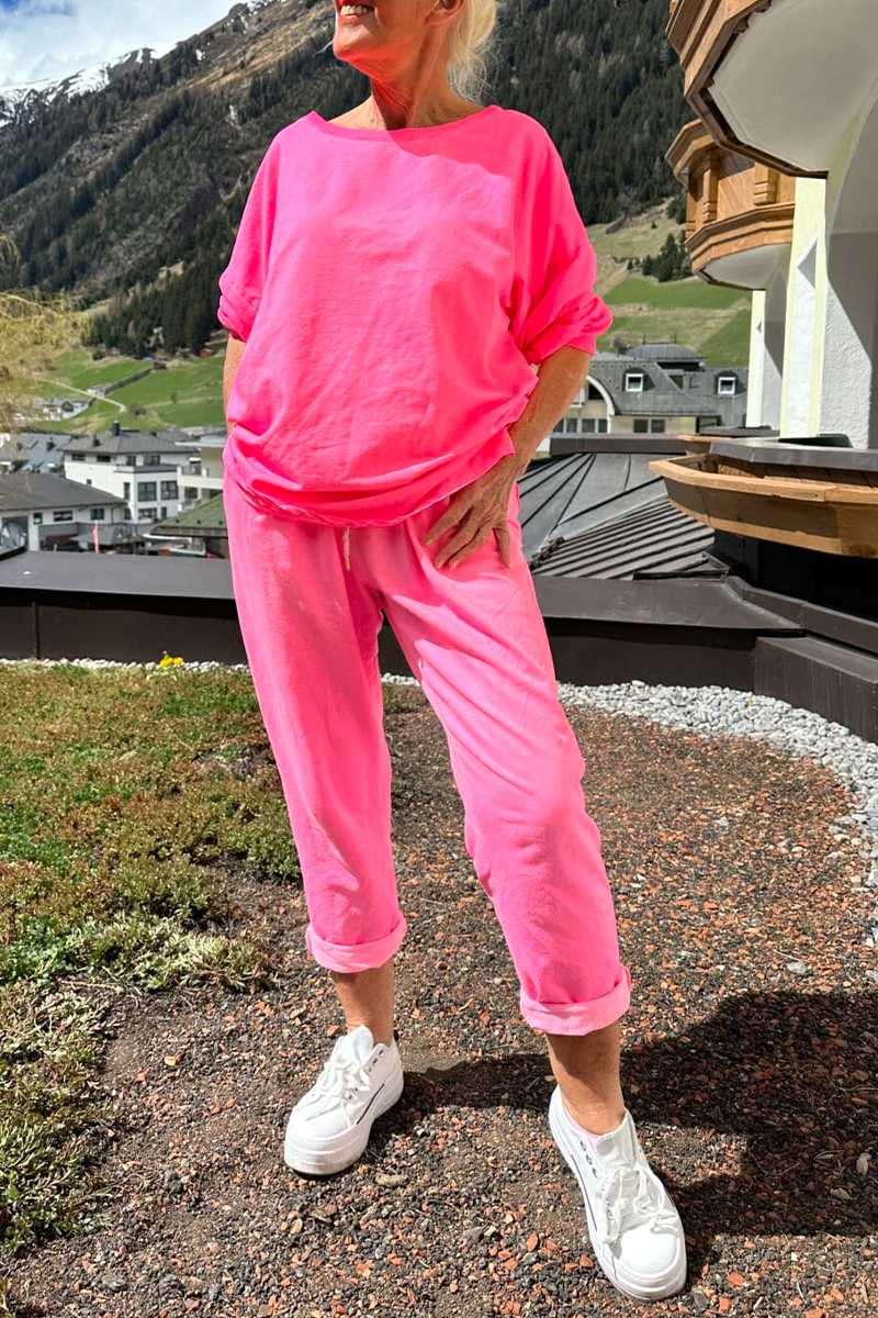 Ladies' Round Neck Hollow Out Solid Color Casual Set