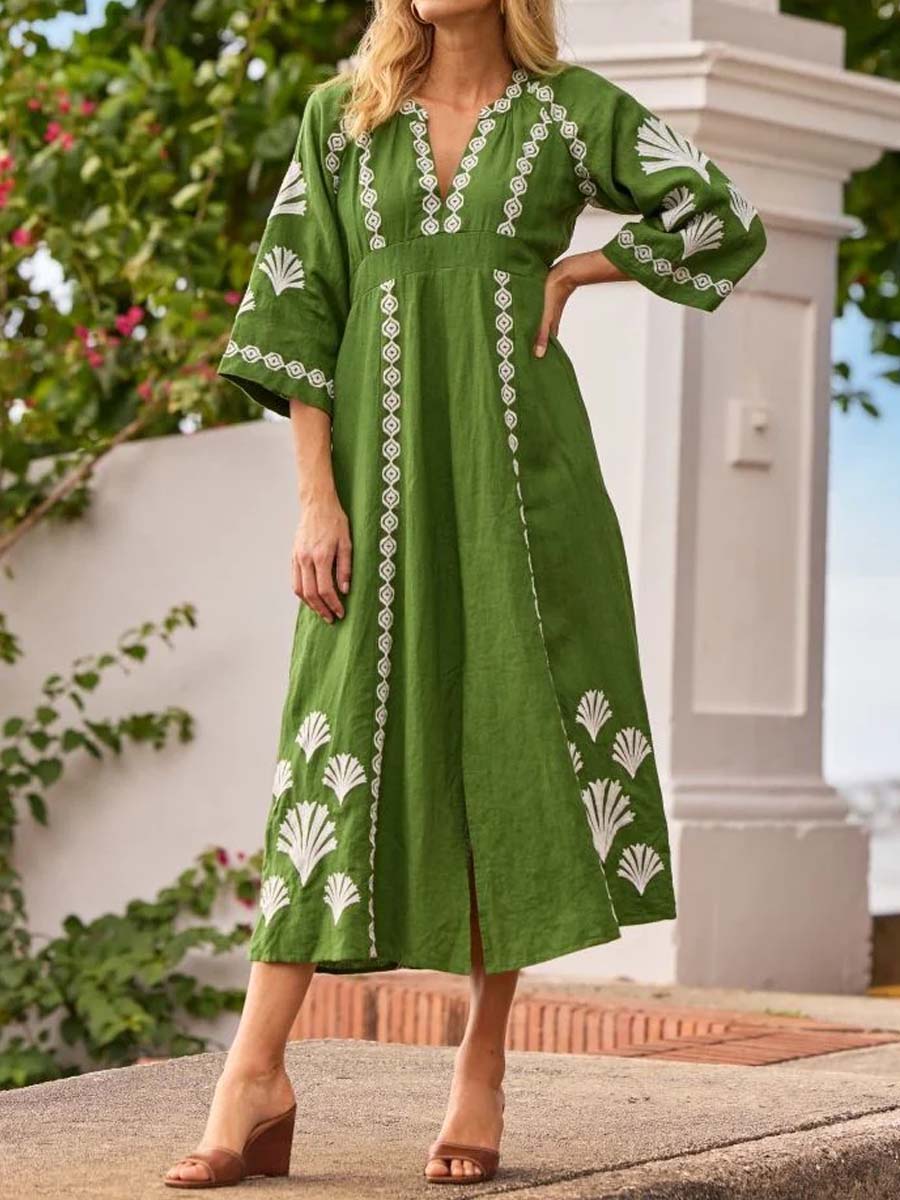 The V-neck design is sexy and charming, which can elongate the neck line and showcase the elegant collarbone of women. The long sleeved style not only adds a sense of dignity, but also provides a suitable wearing experience in different seasons. In terms of material, high-quality fabrics are carefully selected, which are soft, comfortable, and fit the skin. Good breathability and drape make the dress more comfortable and comfortable to wear, while also showcasing a beautiful figure curve. This stylish solid color V-neck long sleeved dress is suitable for various occasions, whether it's attending parties, dinners, daily travel, or dating, it can make you a fashion goddess who attracts everyone's attention. It is a must-have fashion item for fashionable women, adding a dazzling shine to your wardrobe.