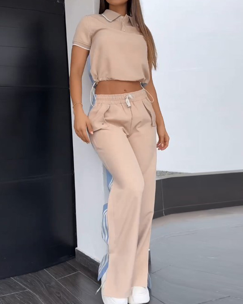 | Product Name: | Lapel short-sleeved color stitching two-piece suit | |||||