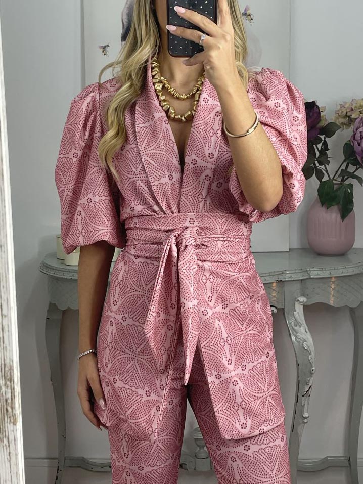 Puff Sleeve Casual Ethnic Style Fashion Commuter Women's Shirt Set