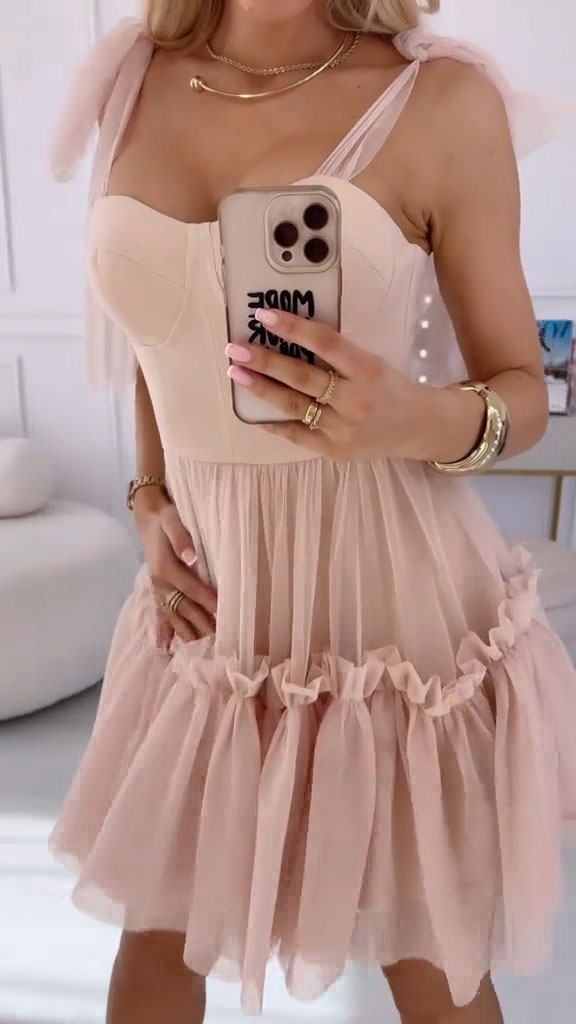 Romantic women's summer lace up strapless fluffy dress