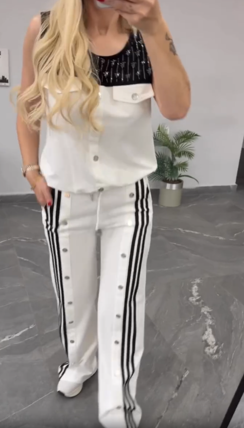 Summer women's button up sleeveless top and pants set