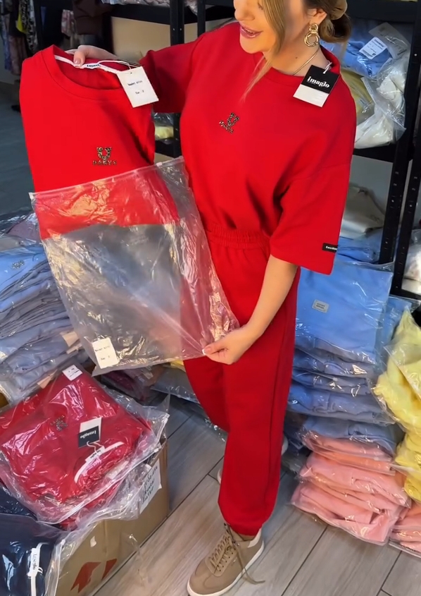Rhinestone letter round neck cuff pants casual suit - the perfect collision of street and luxury, wearing a high street style