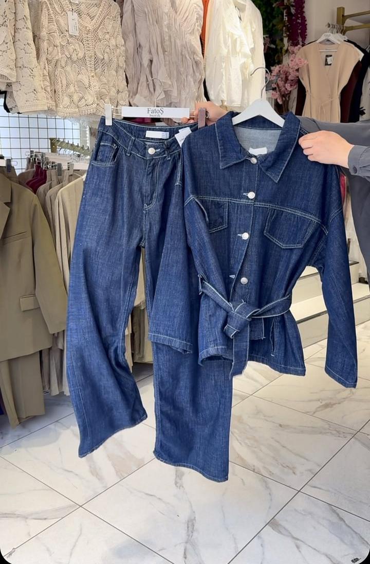 Women's Fashion Retro Strap Denim Set