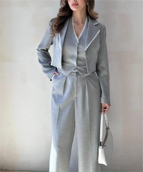 Women's fashionable floral bud edge vest suit set