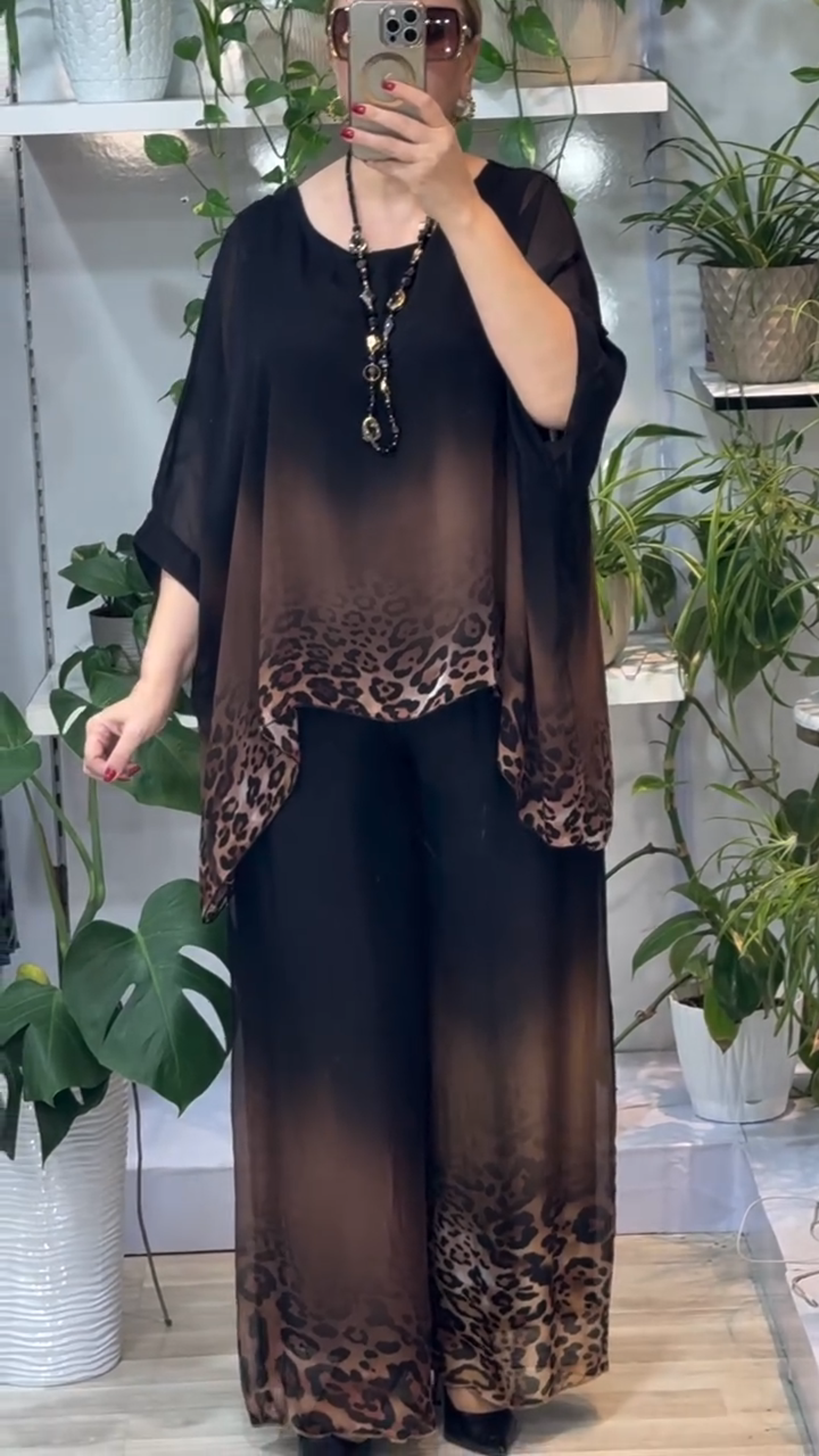 Women's Gradient Leopard Print Crew Neck Top And Wide Leg Pants Set