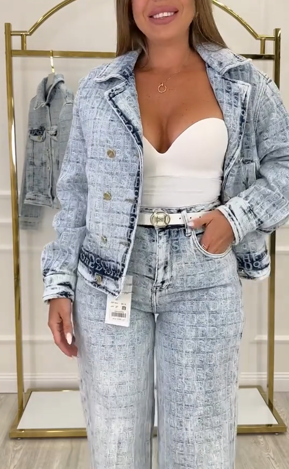 Women's Plaid Casual Lapel Jacket Wide Leg Denim Suit