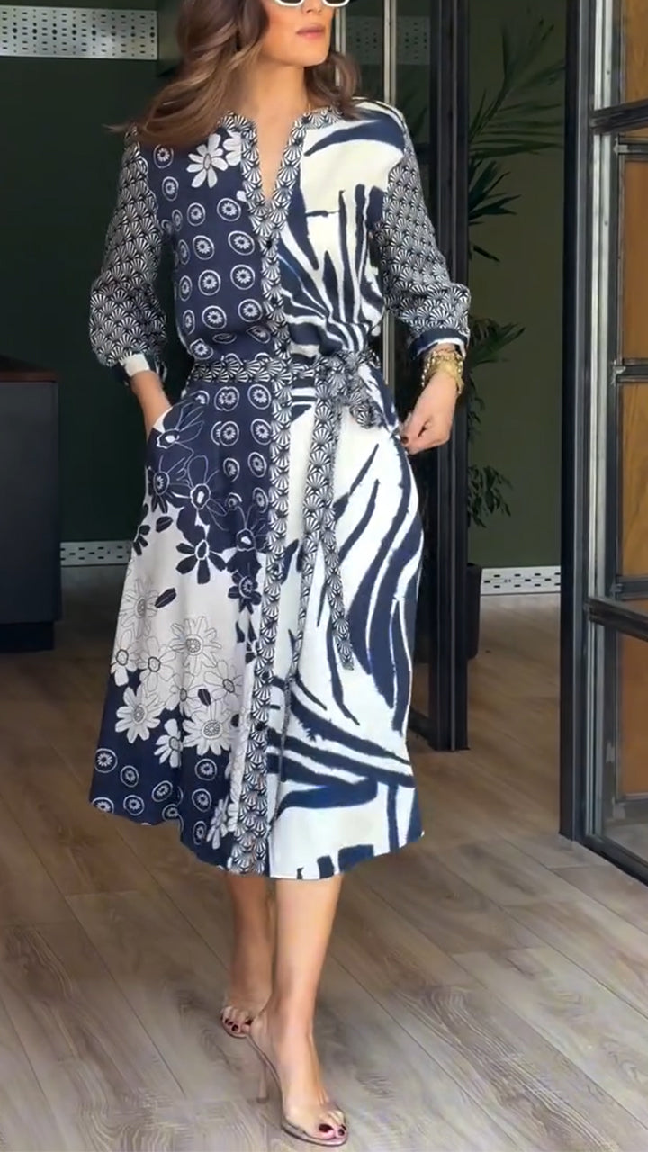 Women's Round Neck Printed Slit Casual Dress💞