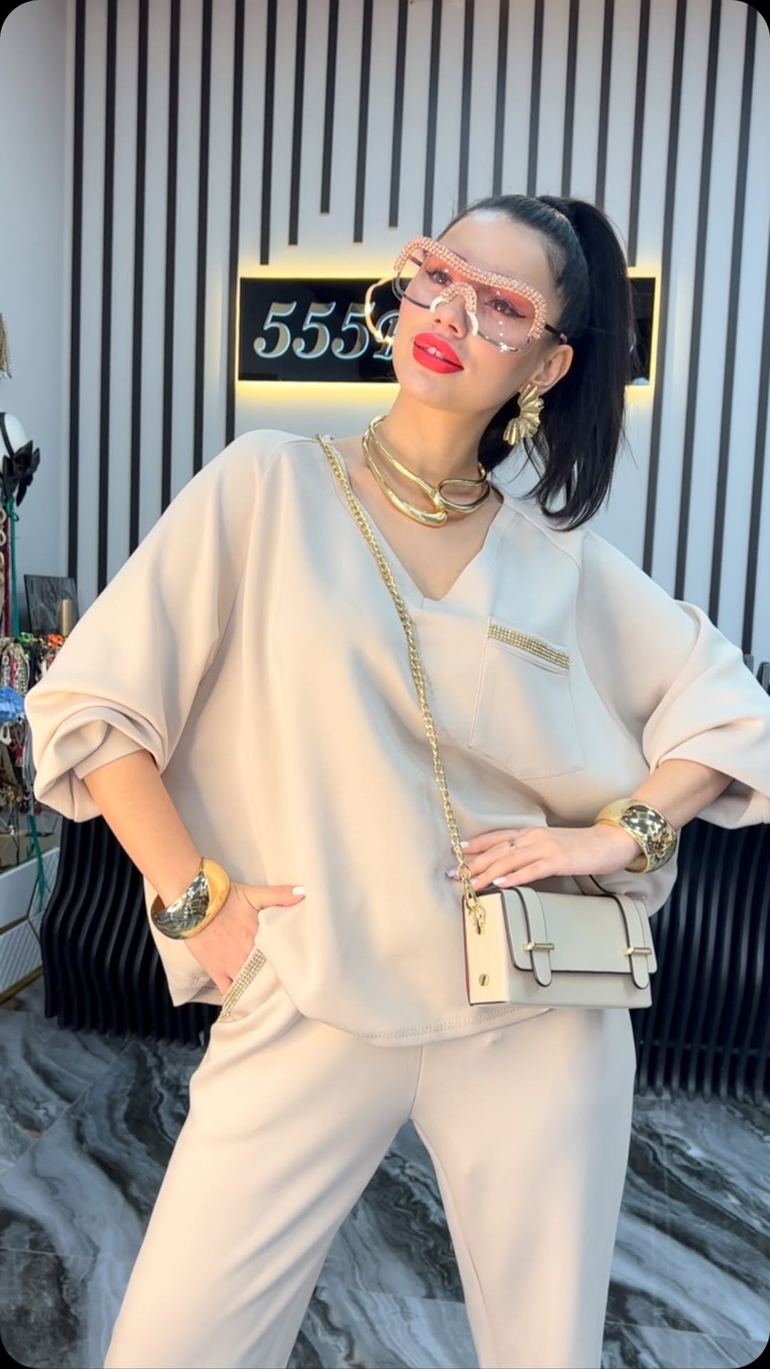 Women's V-neck pants solid color casual set💕