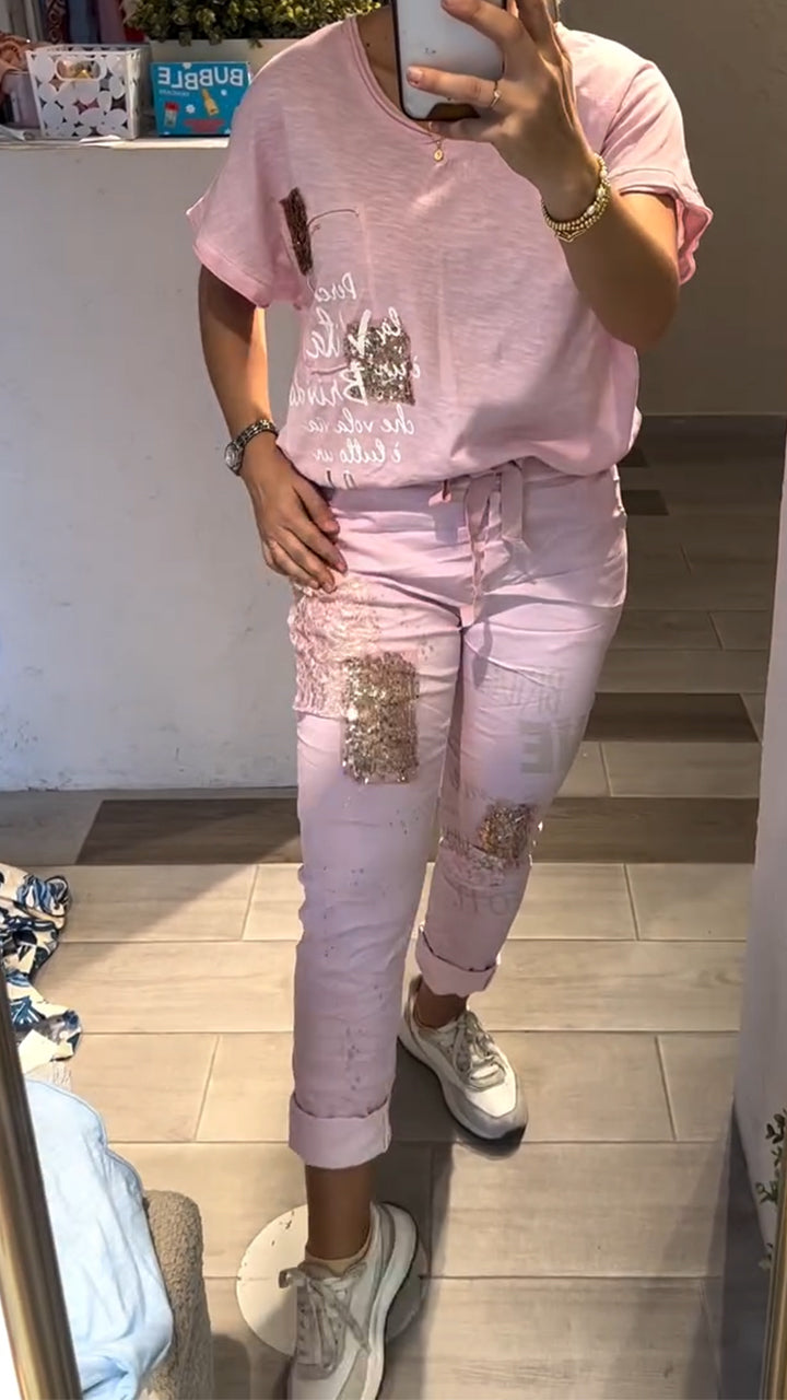 Women's V-neck printed foil stamping top and pants casual set