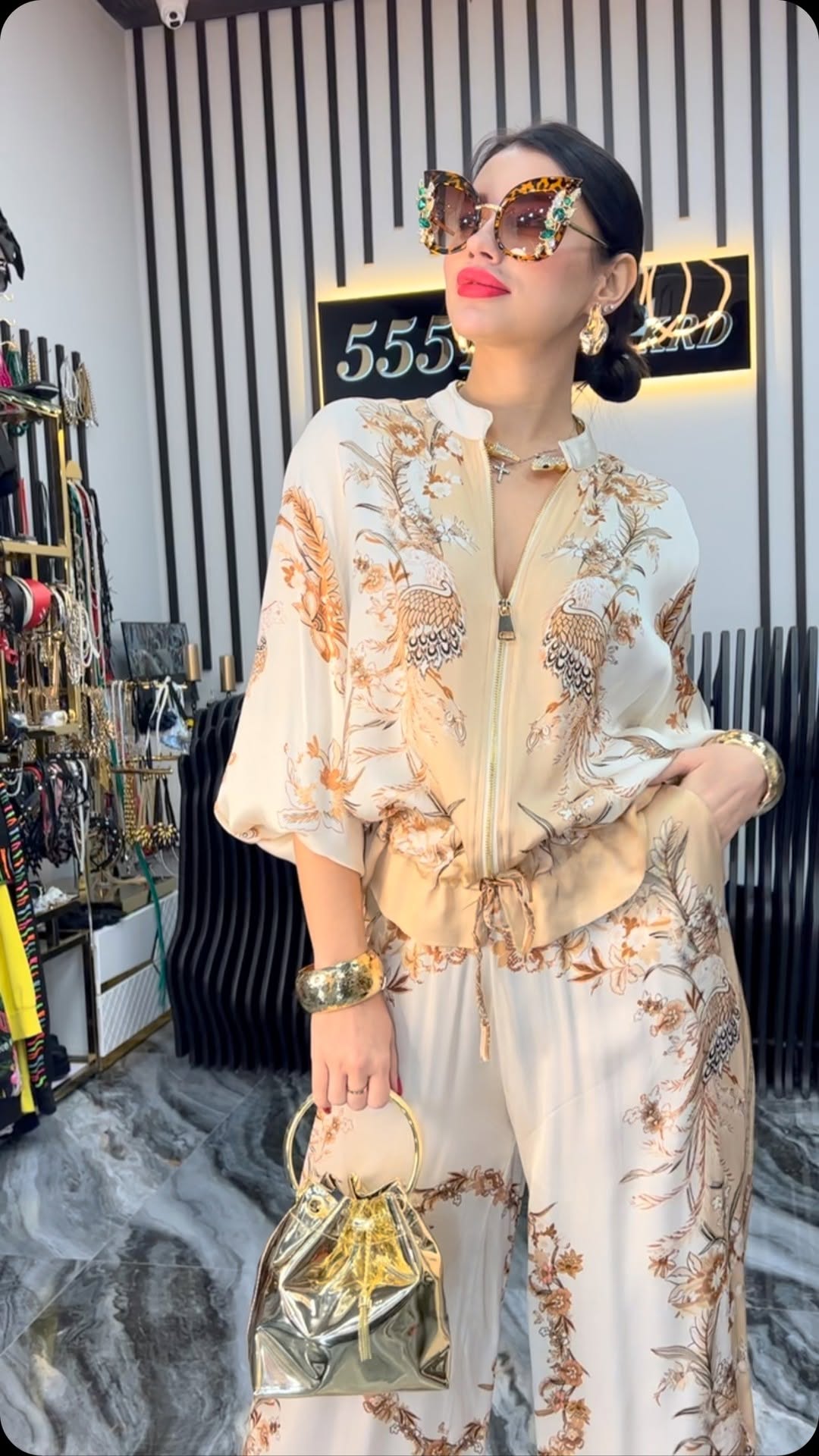 Women's vintage print lace casual loose suit